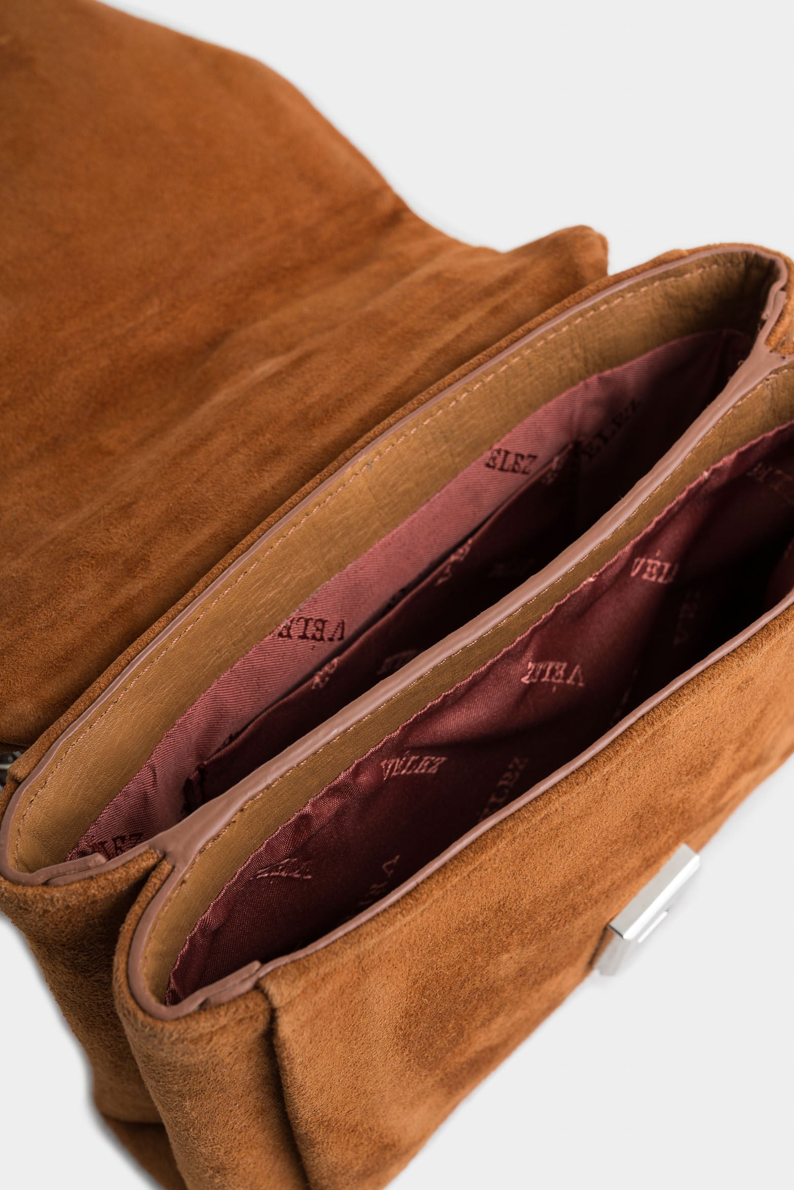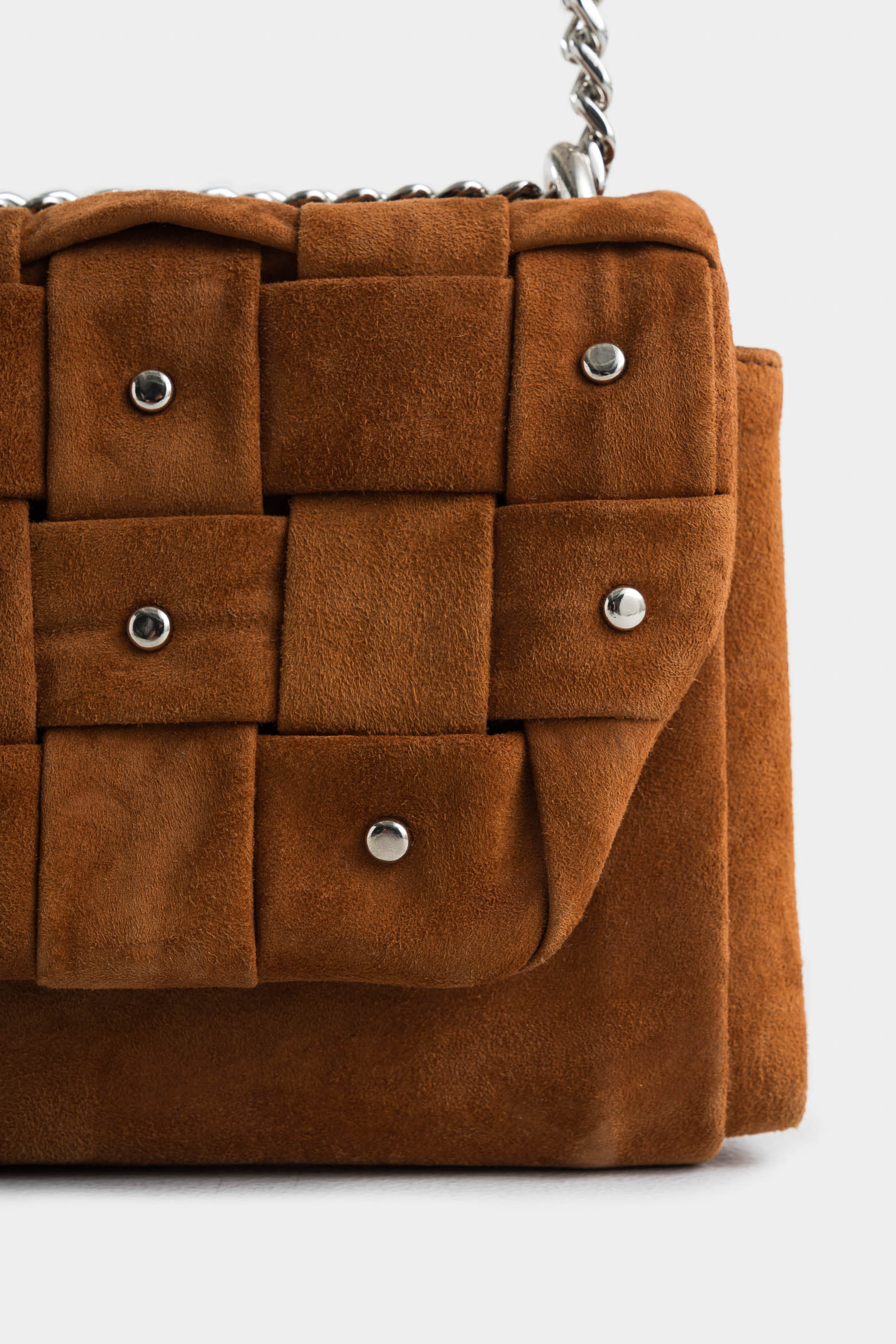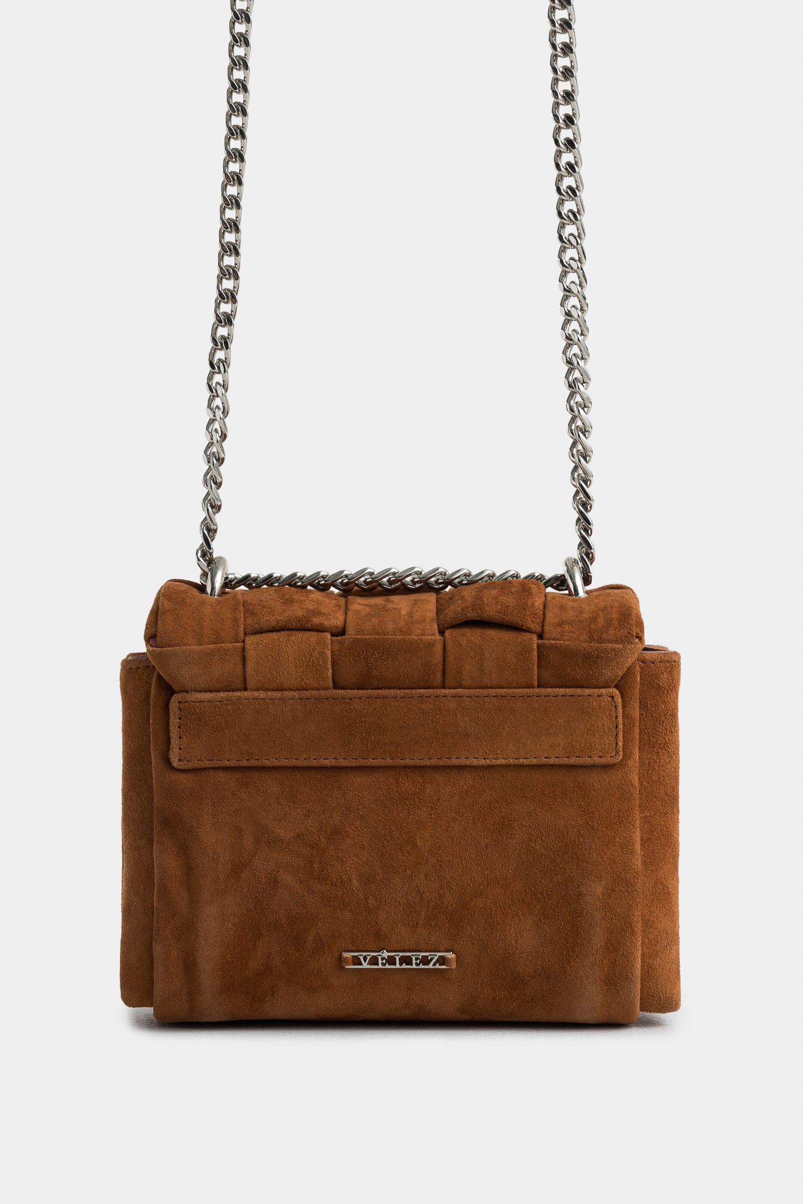 With timeless beauty and versatile nature, our Mini Lili hands-free bag is masterfully crafted in suede leather. This enchanting piece is highlighted by artisanal textures, a unique weave on the flap, and decorative studs that give it an avant-garde aesthetic. Its chain strap adds a versatile air to this luxury accessory. Internally, it offers functionality with a special compartment for your cell phone and a zippered pocket to securely guard your most treasured items.