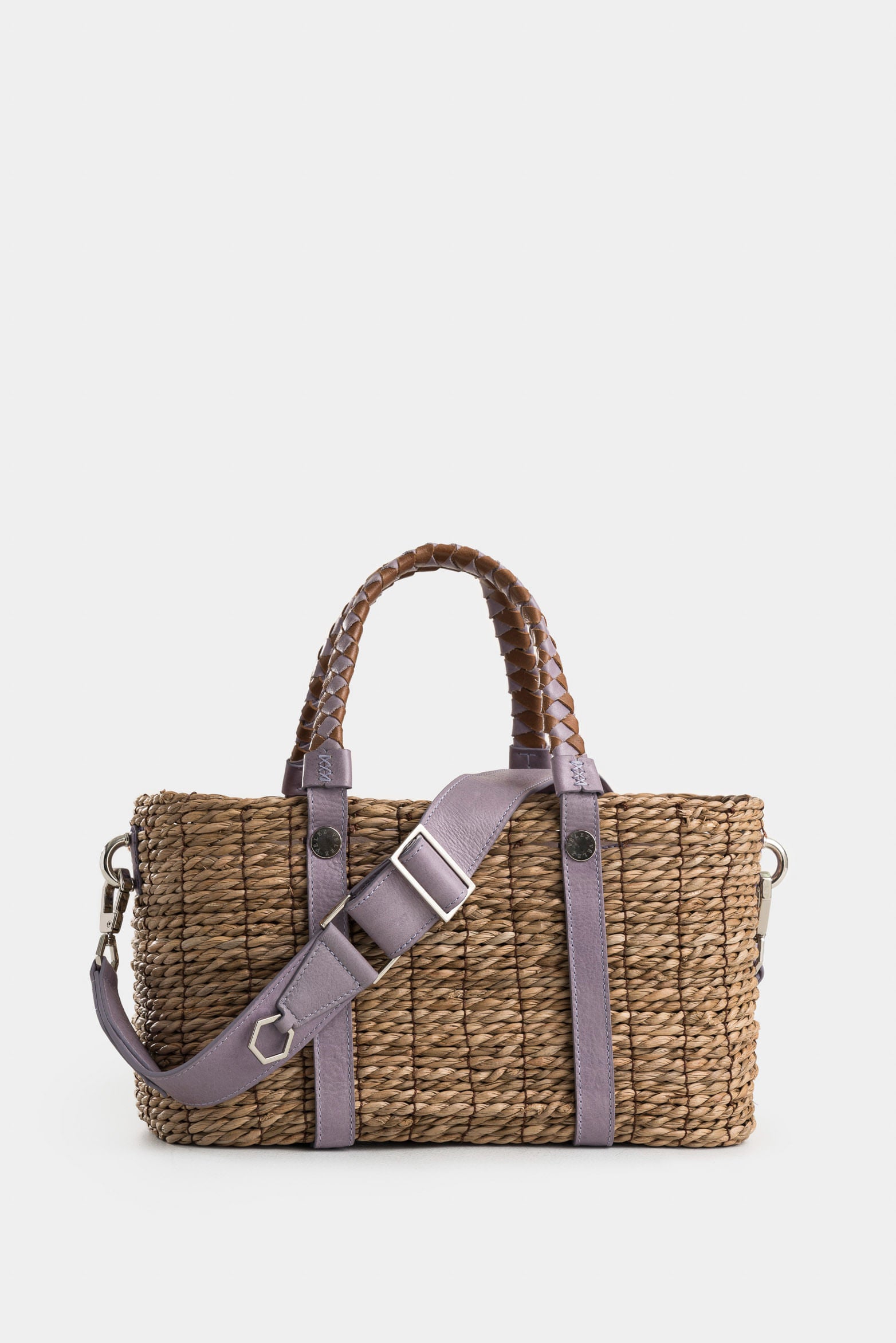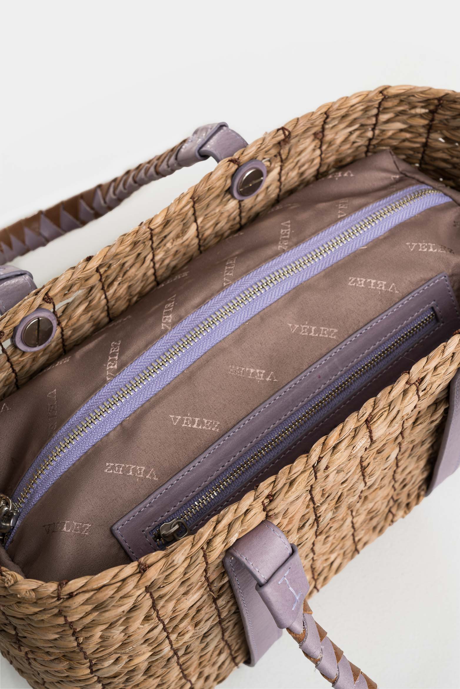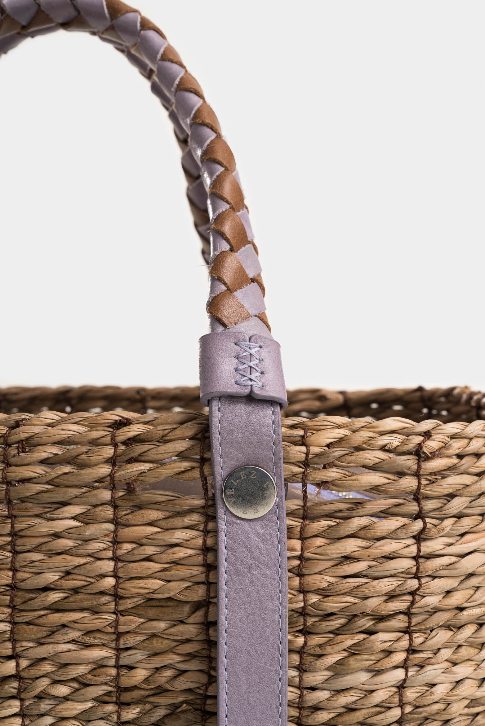 Natural Fiber Bowling Basket Bag with Braided Handle for Women in Lilac