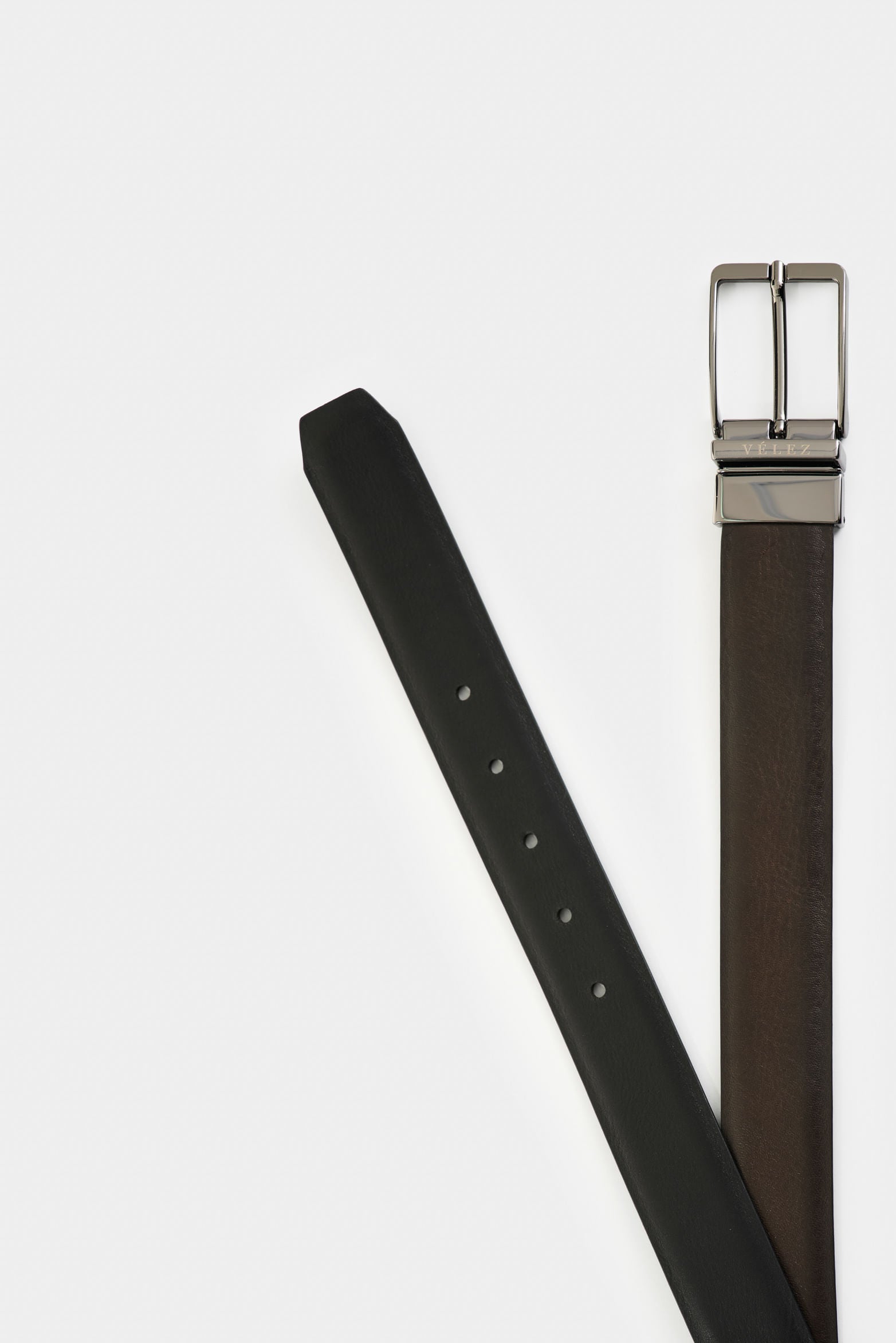 Versatility and sophistication come together in a timeless design. This reversible belt, crafted from smooth-touch leather, adapts elegantly to different styles. Its onyx nickel reversible buckle adds a subtle shine, while the burnished edges and Vélez Artisan embossing highlight the expert craftsmanship in every detail, making it an essential accessory.