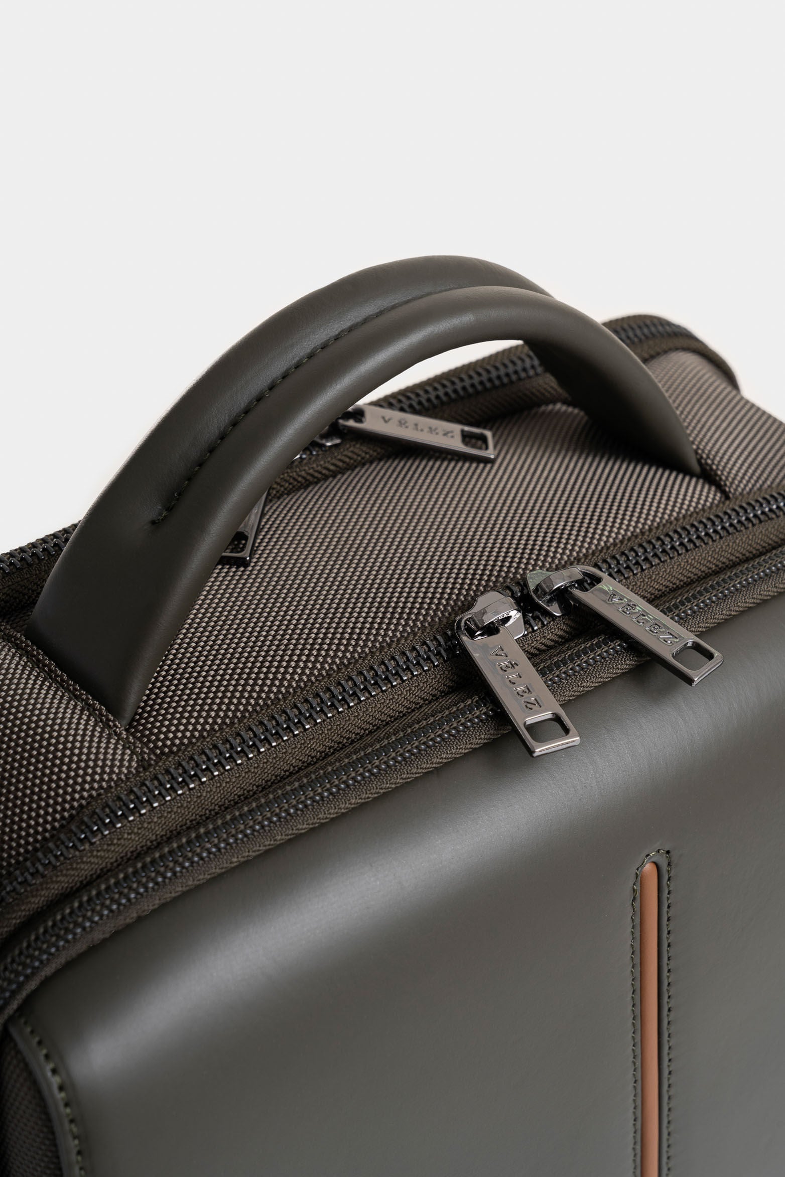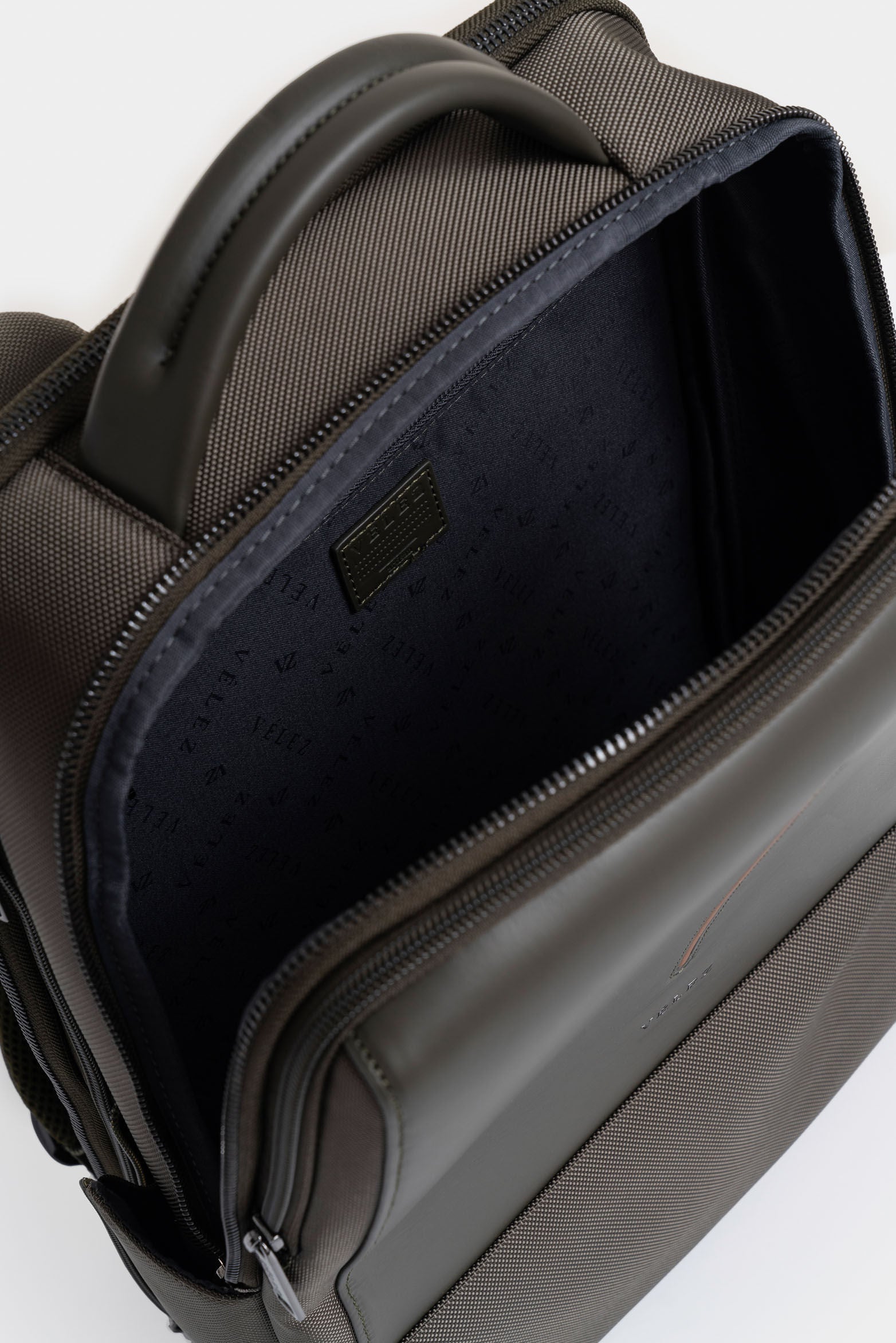 This backpack, which harmonizes the durability of nylon with leather details, is a showcase of Vélez's timeless elegance. Its square and structured design perfectly adapts to the contemporary lifestyle. It features a compartment for a laptop up to 15 inches and external pockets for optimal organization. Its comfortable design is enhanced by a thermoformed back and adjustable shoulder straps for daily dynamism. The leather handle and color accents add a touch of sophistication to the silhouette.