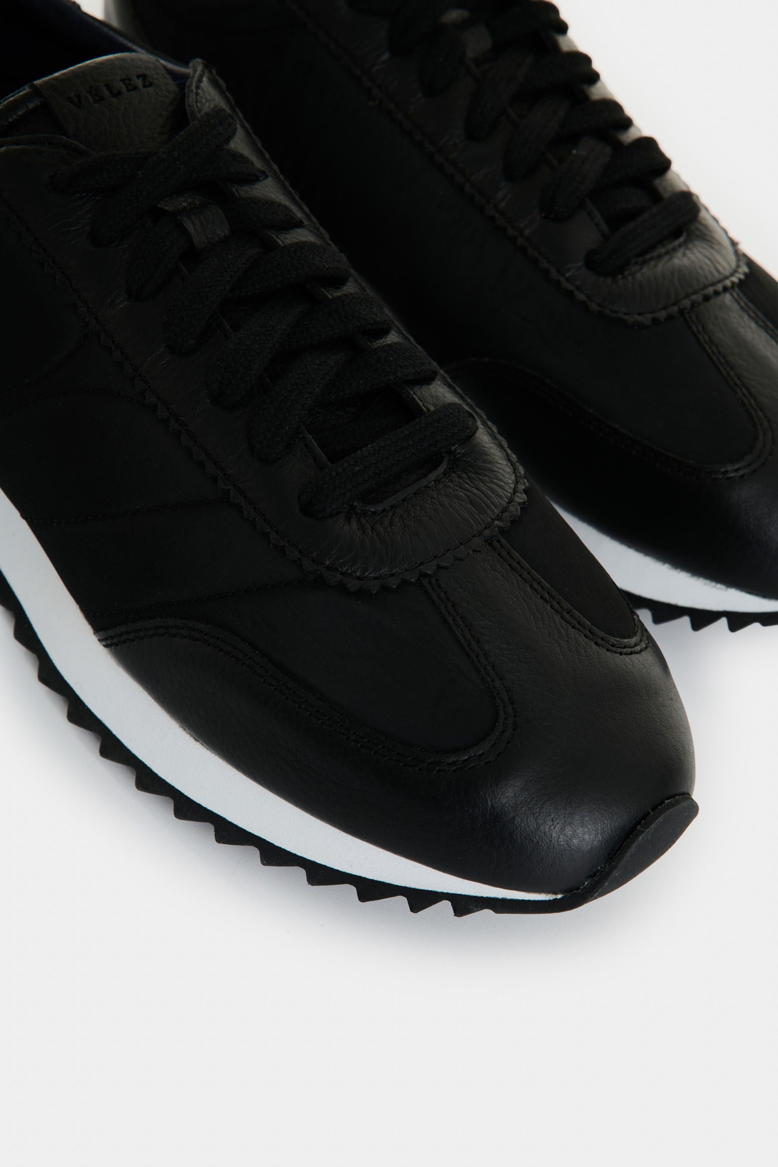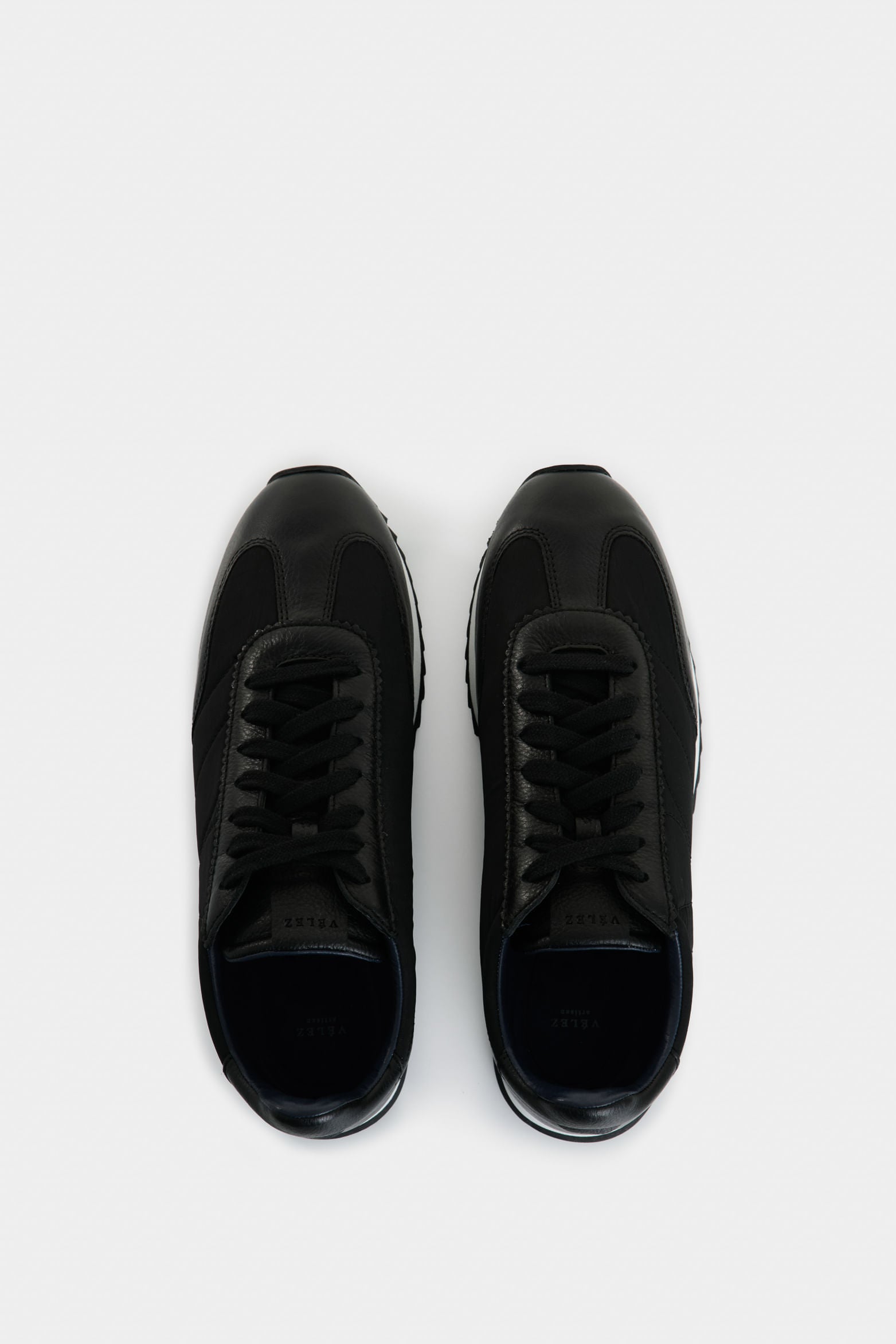 These sneakers, inspired by the sporting world, combine a clean, sophisticated aesthetic that elevates your style with a contemporary touch. Handcrafted in canvas and leather, they stand out for their meticulously crafted details, such as the cutouts that add visual texture and a refined finish on every seam. The contrasting sole ensures traction and comfort, while the decorative side stitching complements their versatile, modern design.