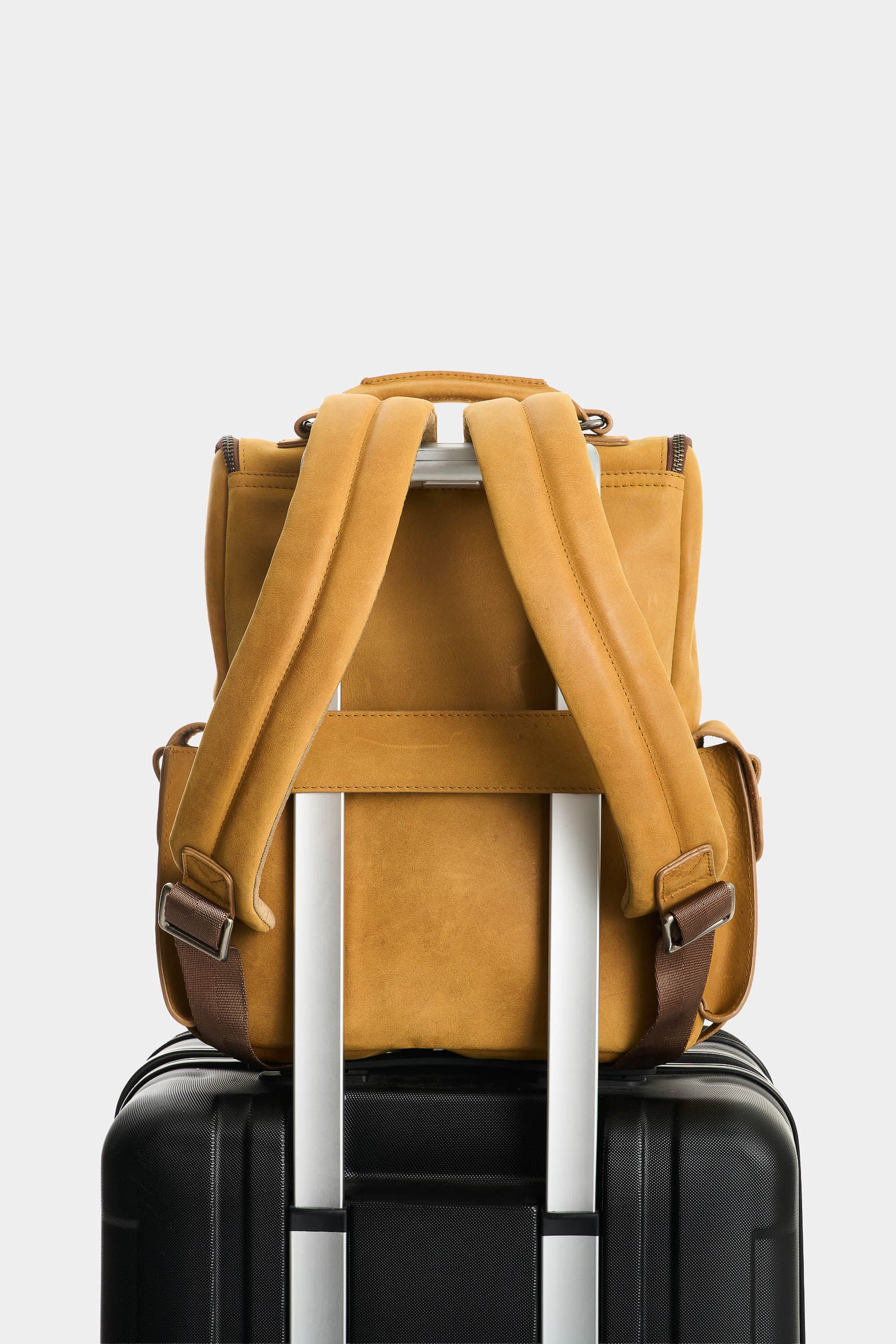With strong lines and solid construction, this backpack reflects a utilitarian aesthetic with explorer-inspired references. Smooth aged leather contrasts with metal hardware for a sober and functional finish. Designed to accompany travel or days in motion, it offers structure, sophisticated presence, and the kind of practicality that becomes personal style.